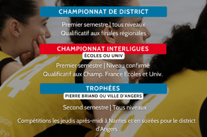 Les inscriptions des vos équipes de Sports Collectifs sont ouvertes ! Attention à bien faire la distinction entre le championnat de district et le championnat interligues : District : Lien d’inscription Nantes Lien... Pour en savoir plus