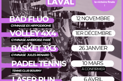 Les inscriptions pour la première soirée du Challenge Sportif des étudiants de LAVAL sont ouvertes ! Formulaire d’inscription 5 soirées sportives qui détermineront quel est le meilleur établissement de Laval ! Venez défendre... Pour en savoir plus