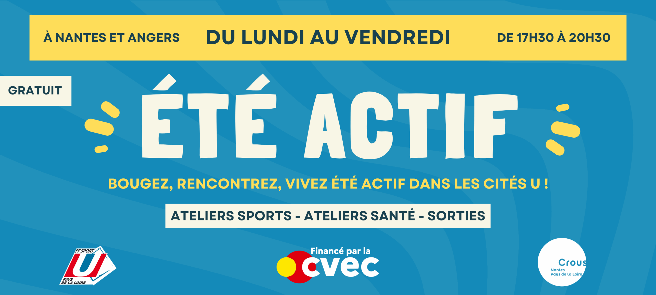 Du 30 juin au 22 août 2025, les étudiants de Nantes et Angers ont participé à Été Actif. C’est un dispositif gratuit financé par la CVEC, combinant activités sportives et prévention santé. L’objectif : lutter contre la sédentarité et l’isolement social grâce au sport et à des actions de prévention santé.