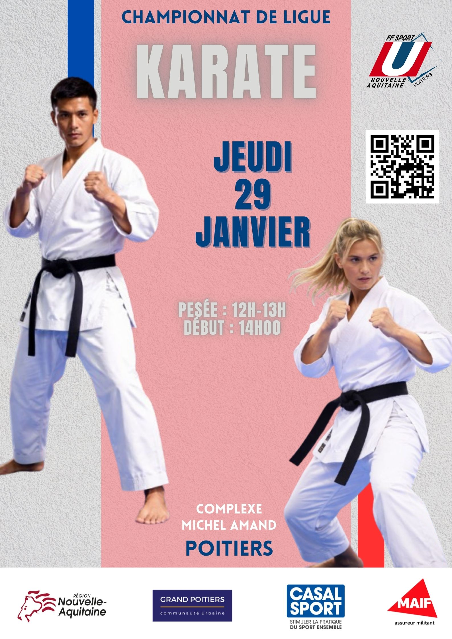 | KARATE | CHAMPIONNAT INTER-LIGUES qualificatif pour le CFU | 19 janvier | 29 janvier 2026 | Poitiers | Affiche Inscription kumite Inscription kata | Résultats |