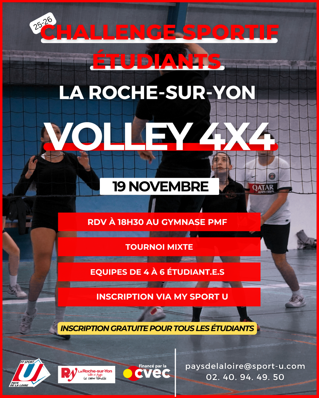 Les inscriptions pour la deuxième soirée du Challenge Sportif des étudiants de la Roche sur Yon sont ouvertes !